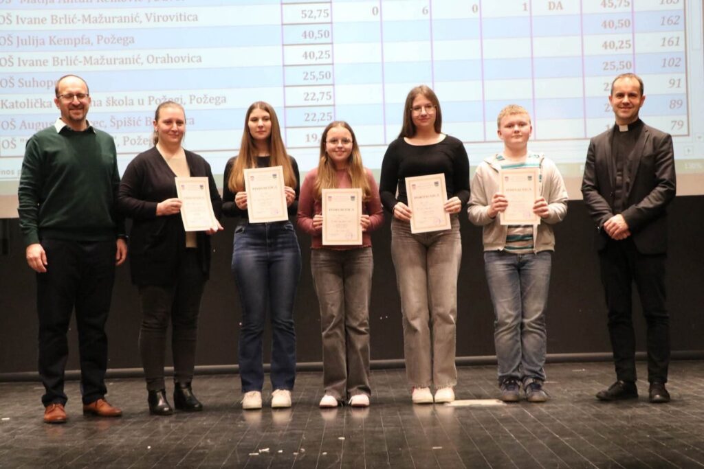Biskupijsko natjecanje iz Vjeronauka održano je 19. ožujka 2026. u Požegi. Tema natjecanja bila je “Žene u Bibliji”, a na njemu je sudjelovalo četvero učenika naše škole predvođenih mentoricom, vjeroučiteljicom Valentinom Džinić Lončarić. Pokazali su odlično znanje i vještine te su osvojili 4. mjesto.