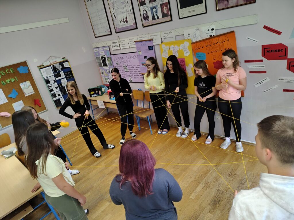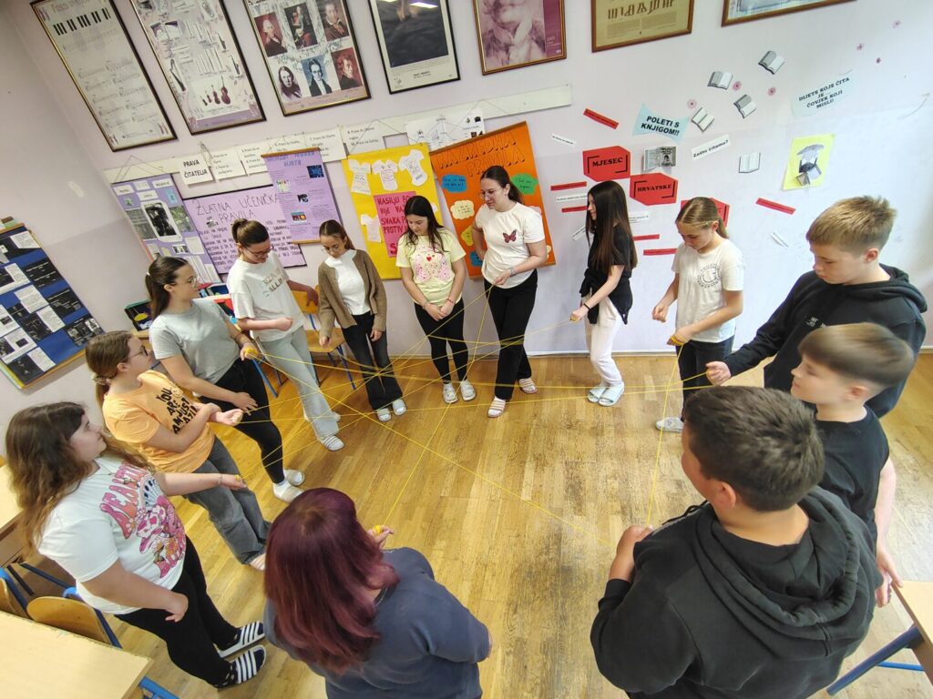 U uvodnoj aktivnosti „Nevidljive niti“ učenici su, bacajući klupko vune, izgovarali misli koje vrijede za sve ljude. Nastala mreža simbolizirala je povezanost i međusobnu ovisnost svih nas. Razgovarali smo o poruci pjesme i ideji univerzalnog zajedništva koje nadilazi granice.