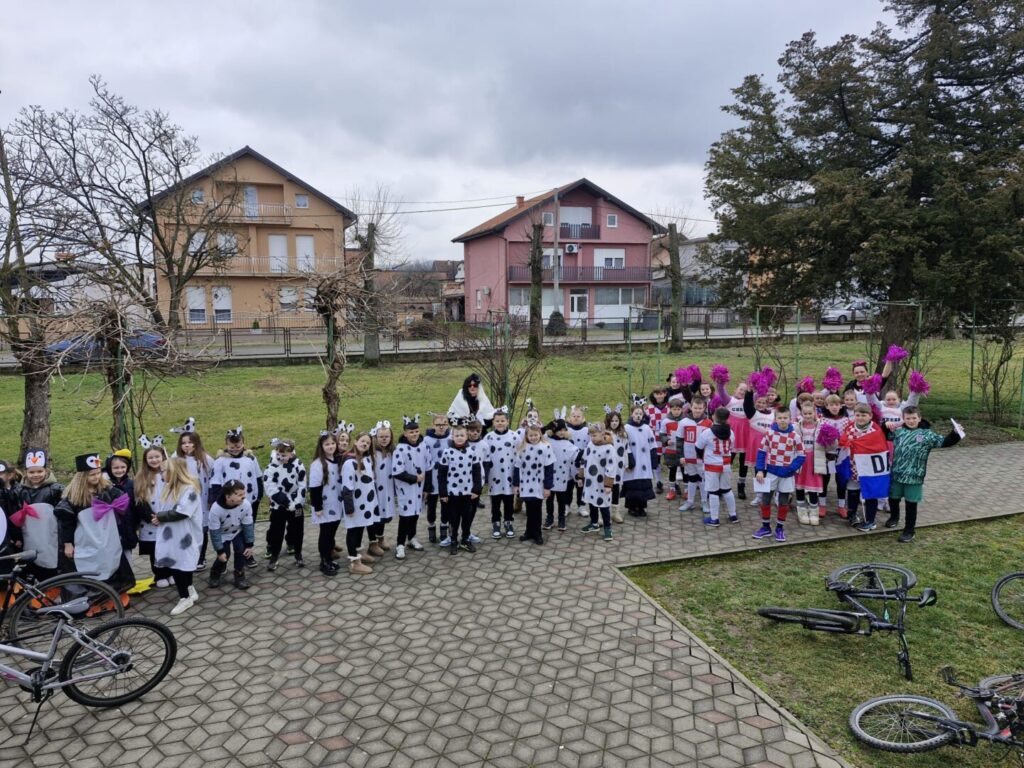 Djeca su prošetala do Trga Matije Antuna Relkovića pjevajući prigodne pokladne pjesme i uz veselu glazbu pokazivala svoje maske, a veselo raspoloženje proširilo se cijelim mjestom.