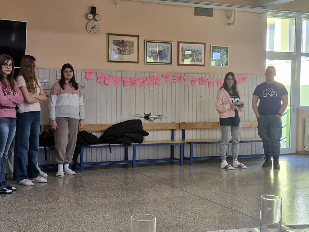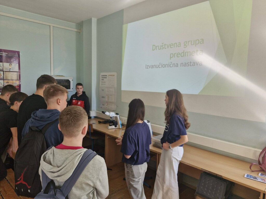 Učenici novogradiške gimnazije predvođeni ravnateljicom, prof. Ljiljanom Ptačnik, te profesorom biologije Markom Planderom, posjetili su našu školu 25. veljače 2026. kako bi našim osmašima predstavili školu i njezine obrazovne programe. Tako su osmaši mogli iz prve ruke saznati sve što ih zanima o trima gimnazijskim programima: općem, prirodoslovnom i umjetničkom. Okušali su se u upravljanju dronom i mikroskopiranju, upoznali fakultativne predmete, a saznali su i kamo putuju gimnazijalci uključeni u Erasmus programe.